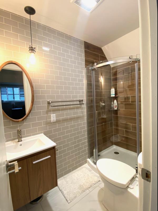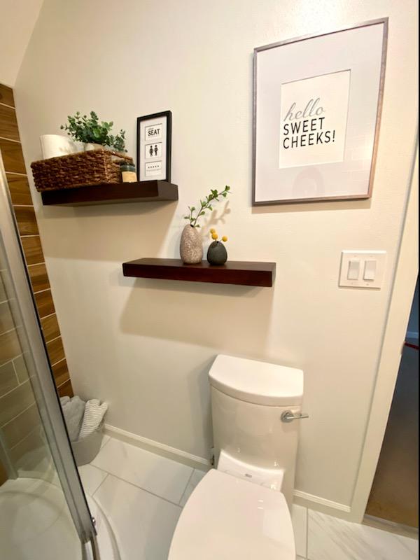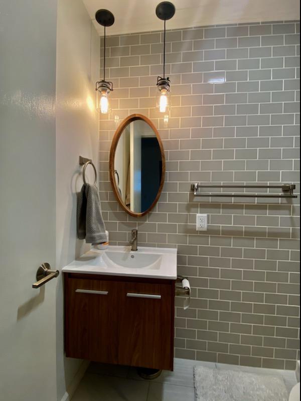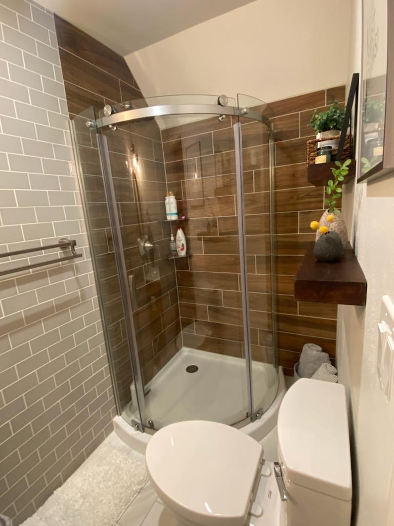 Guest Bath OverhaulProject DetailsOur client had an outdated guest bathroom with some serious space issues. Bathroom was gutted down to the studs and revamped with a modern twist and improved overall space and function. Back to Projects
