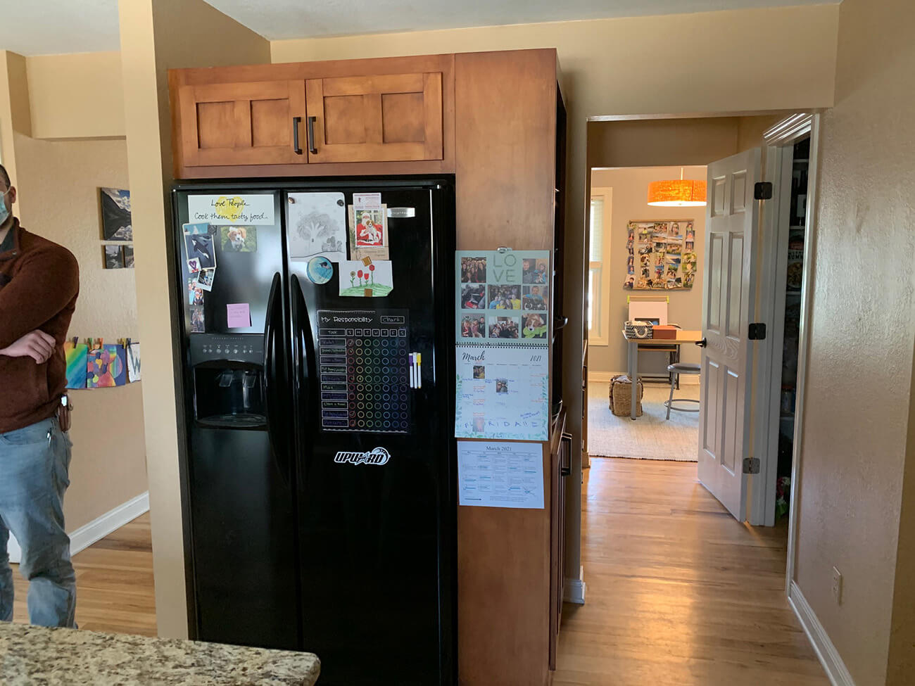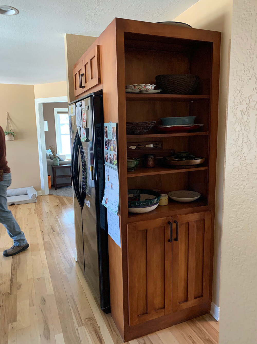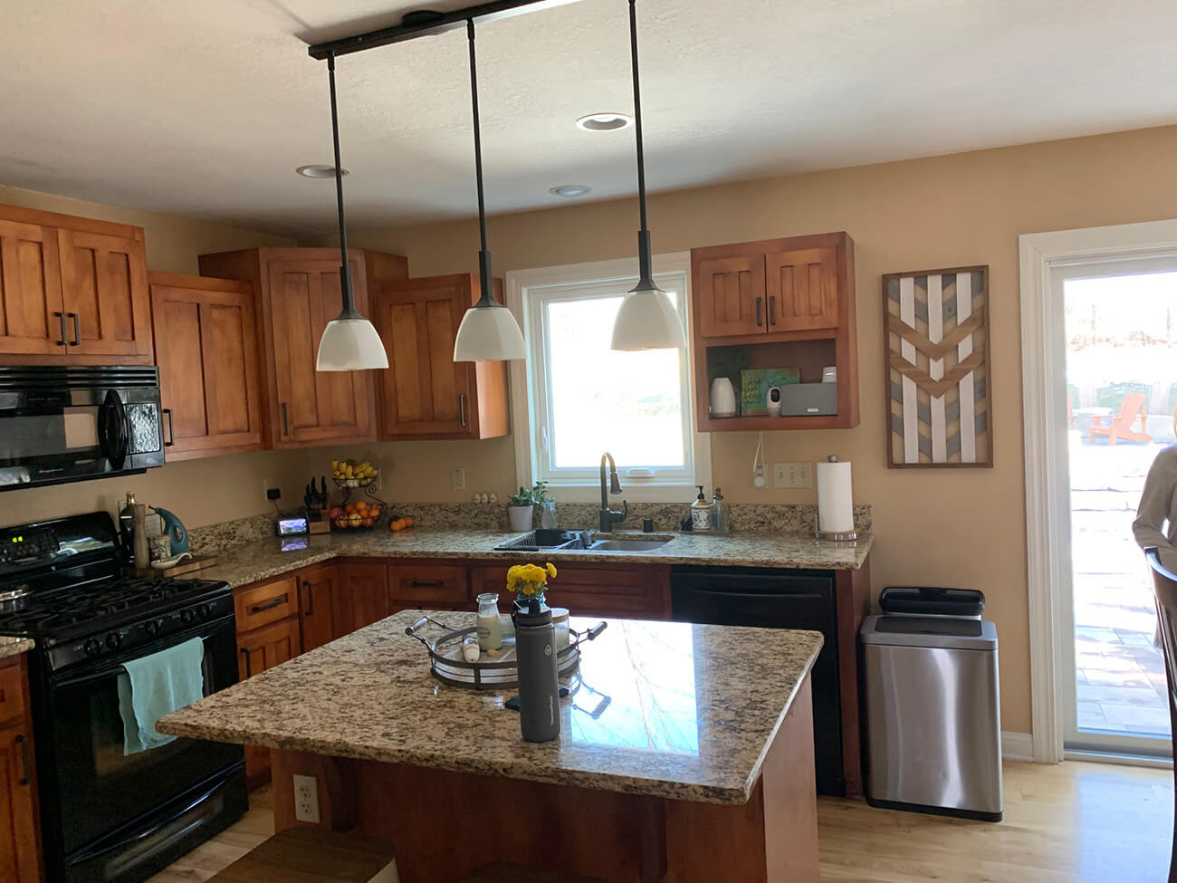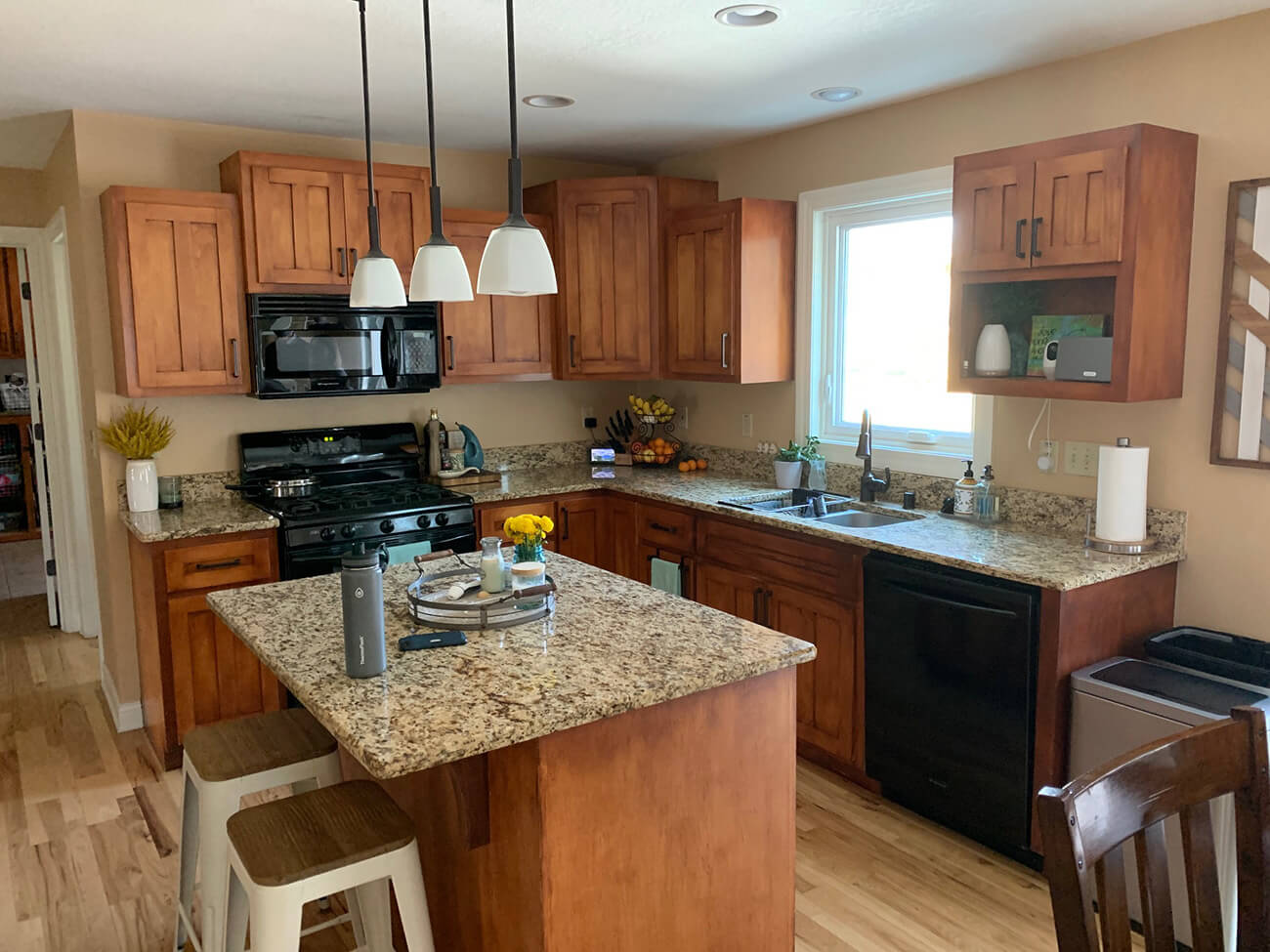 Our client was looking to freshen up and expand their kitchen, dining, and pantry space. We took down a wall between the old dining area and office to expand the overall eating area and lengthen their island for more ample seating. We replaced all of the cabinets, counters, and refinished all of the hardwoods throughout the main level. We chose a very Scandinavian look and feel with light gray and natural wood color tones in addition to oil rubbed bronze fixtures.