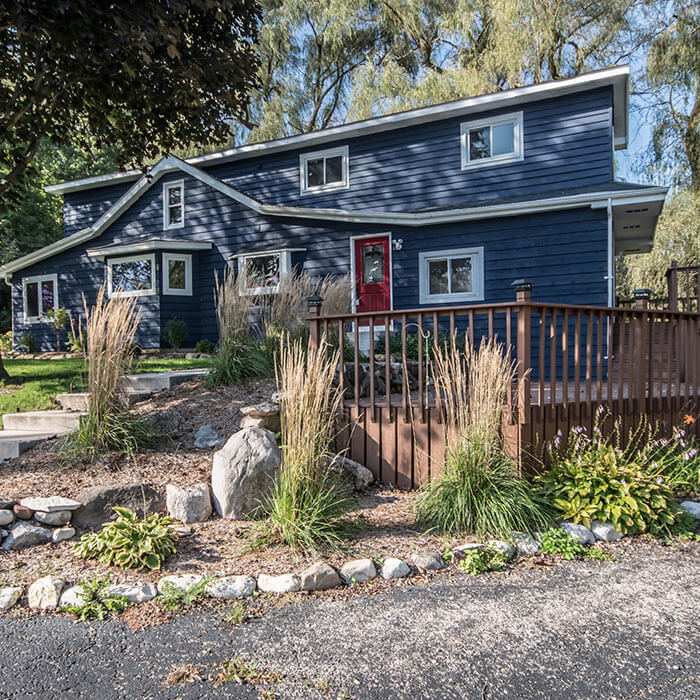 This was an old farmhouse that needed a ton of love. The home initially had 3 front doors, which made it very confusing to guests and delivery drivers. In order to do this, we removed and replaced siding on 60% of the home and in areas where it was rotten. Additionally, the entire roof on the garage was replaced and all structures were completely re-painted and sealed for a very fresh and modern look.