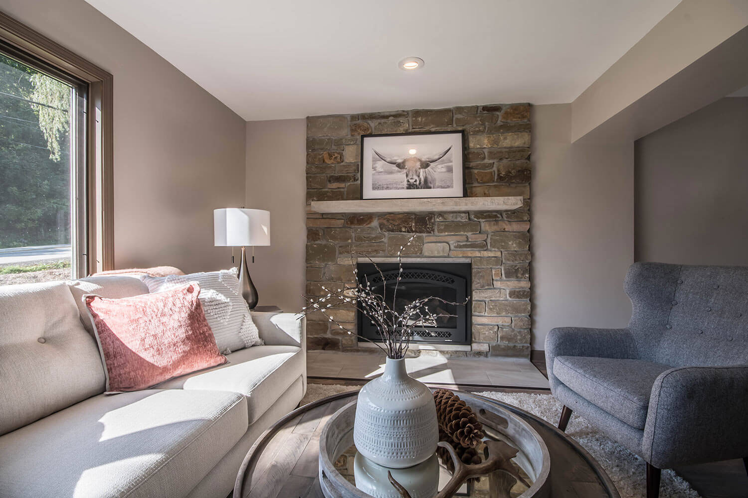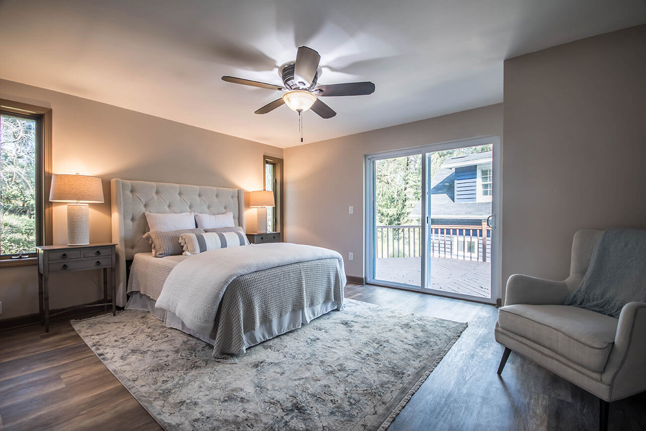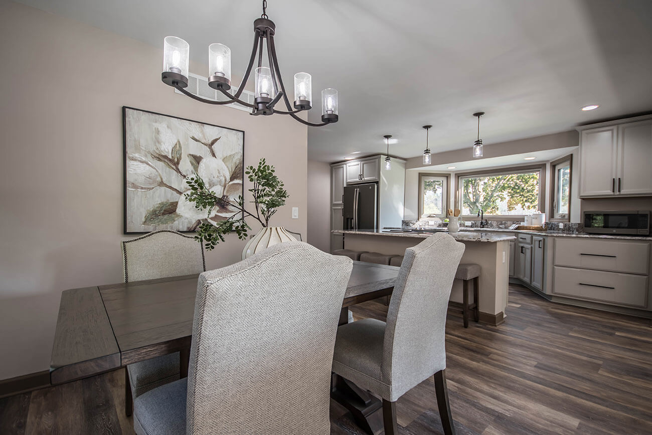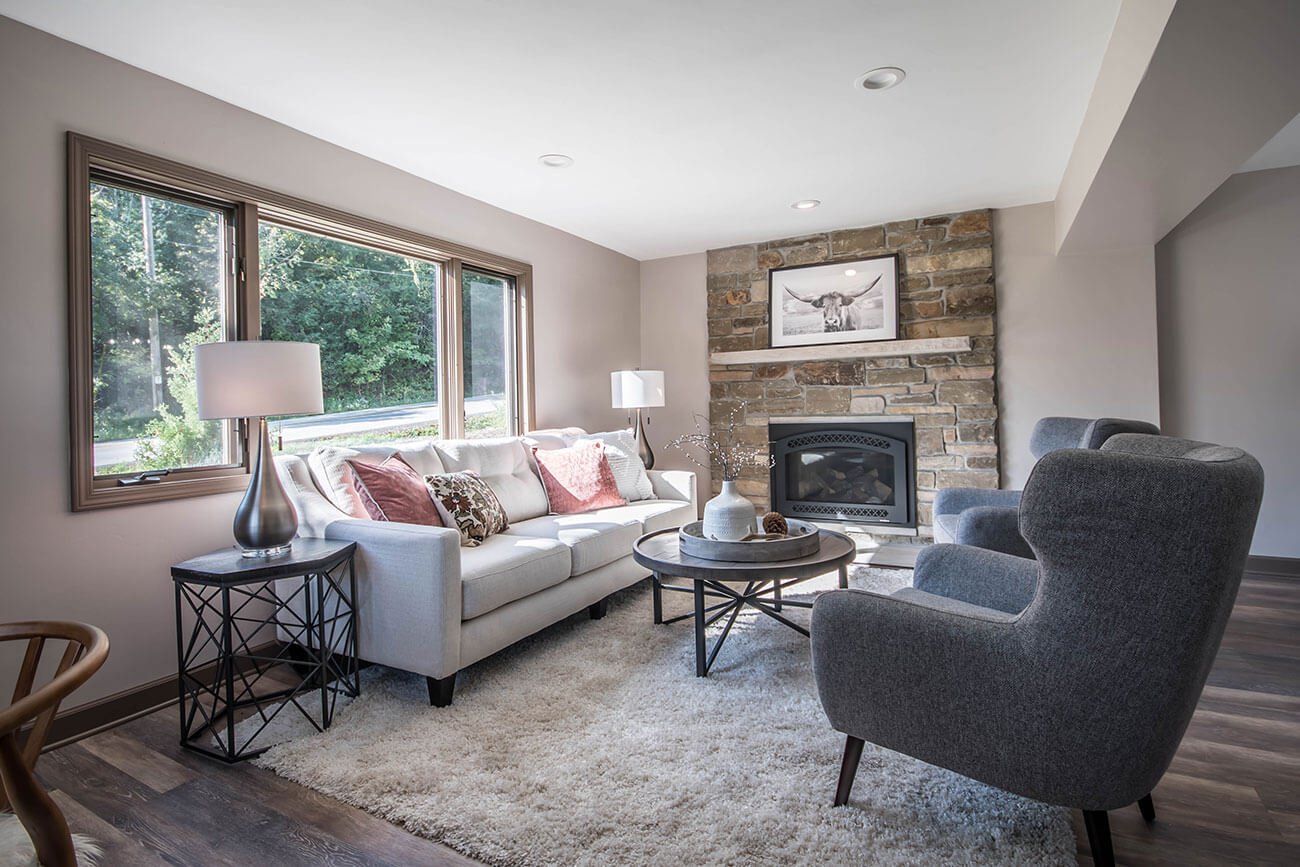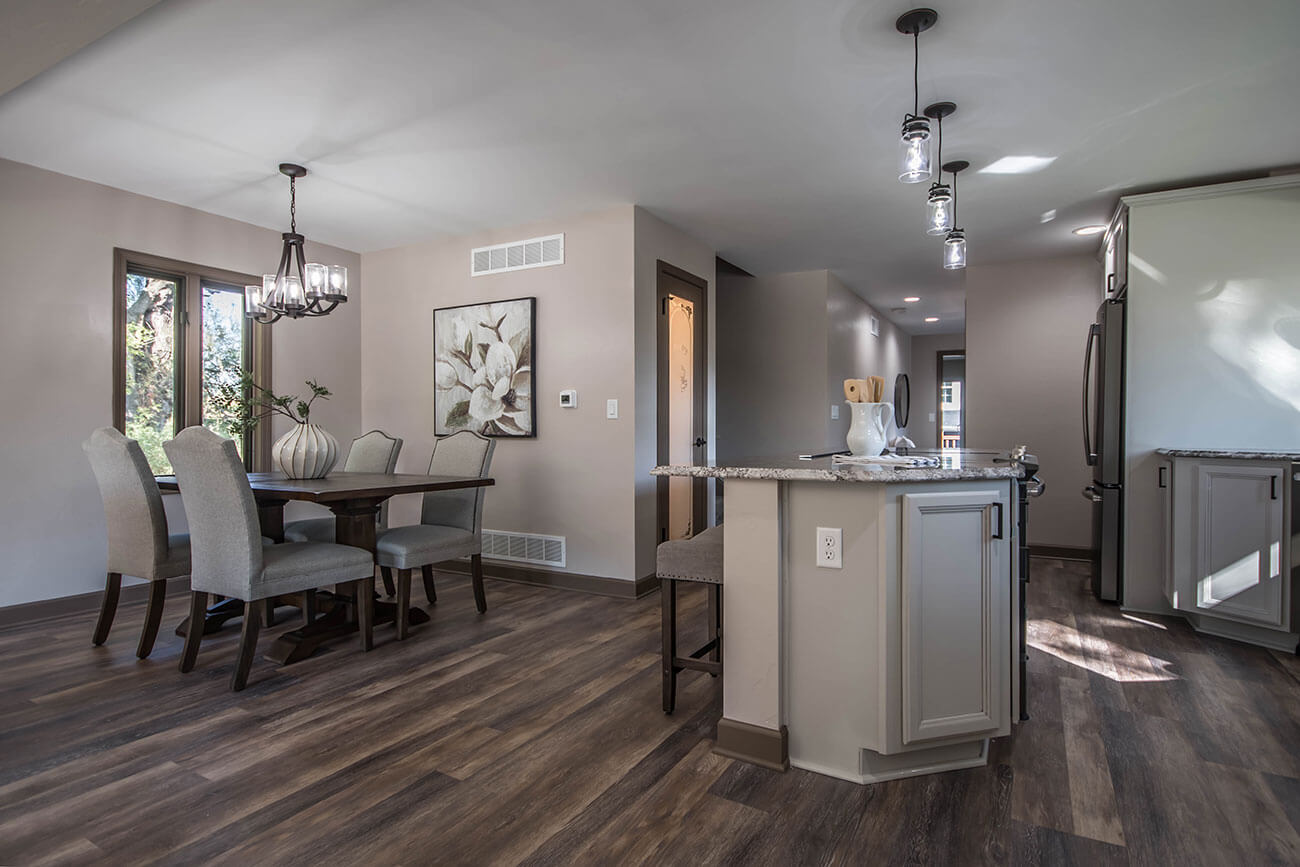 This farm house had been comprised of a series of add-ons upon add-ons, leaving it like a very narrow hallway in every room. We came in and gutted everything down to the studs, removed every interior wall and reinforced with 6 load bearing beams to create a much more open and usuable space. We replaced many windows, all the trim and doors, and added a little walk-in pantry.
